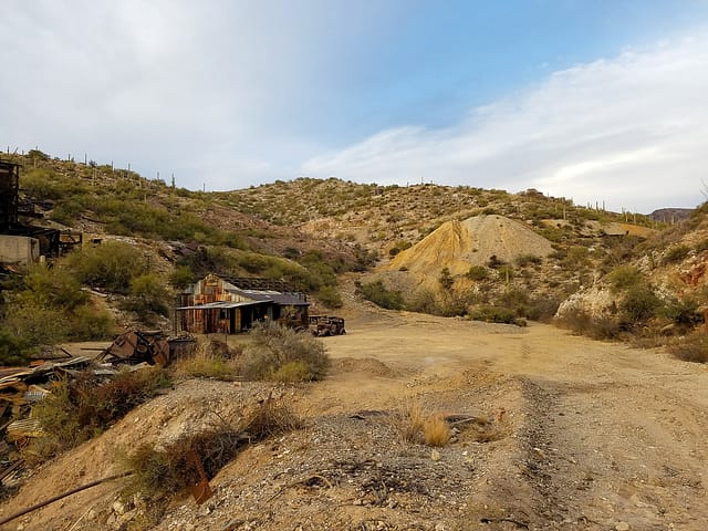 Located within the Banner Mining District of Gila County, Arizona, the 79 mine is a former underground mine with 10,000 feet of workings. The now capped shaft featured was a total of 450 feet deep. While its most notable production was in lead and zinc, it produced many different commodities, totaling $3-4 million. The mine’s name derives from its discovery date of 1879.